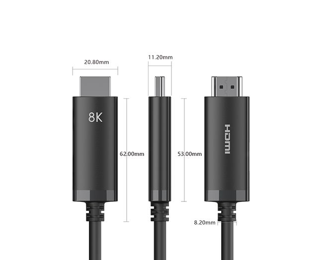 本产品为USB-C转HDMI超高清转接线,,,,,长度3米,,,,,锌合金外观设计 。。。。。。。输入装备可兼容TYPE-C接口的手机,,,,,平板电脑,,,,,条记本电脑等,,,,,输出装备可兼容带有HDMI接口的投影仪,,,,,显示器,,,,,电视等,,,,,支持最新HDMI标准,,,,,支持8K、4K@120Hz的区分率输出,,,,,将产品的USB-C端与带USB-C接口(DP1.4 Alt Mode 协议,,,,,兼容DP1.2 Alt Mode)的主机/电脑等装备相连,,,,,将8K视频传输到支持HDMI接口的电视上实现超大屏超高清显示 。。。。。。。即插即用,,,,,使用利便,,,,,简约时尚,,,,,易于携带 。。。。。。。