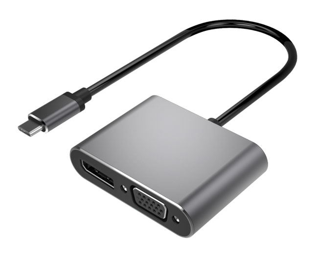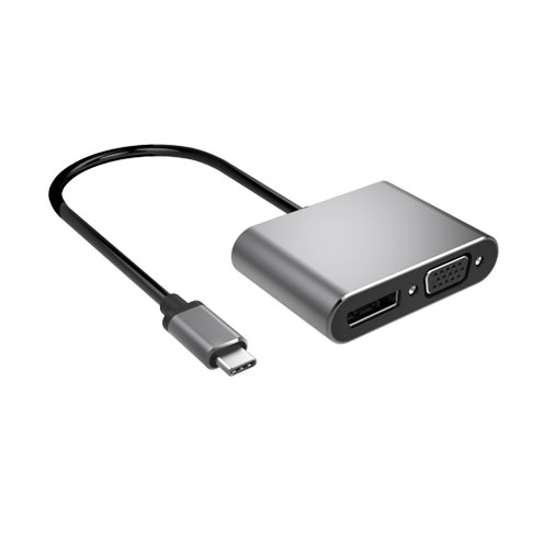 本产品为二合一高清视频转接器,,,,,,USB-C接口支持DP1.2 alt mode 信号输入,,,,,,VGA和DP1.2信号输出,,,,,,VGA接口支持1080P区分率,,,,,,DP支持4K/60Hz区分率,,,,,,不支持两口同时显示。。。。。将USB-C公头插入电脑/平板等有USB TYPE C接口的主机装备,,,,,,再用VGA/DP线毗连有VGA/DP接口的显示器/投影仪等装备,,,,,,即可将电脑的界面复制到显示器上面。。。。。一个二合一转接器可提供两种选择以兼容差别接口的显示装备。。。。。