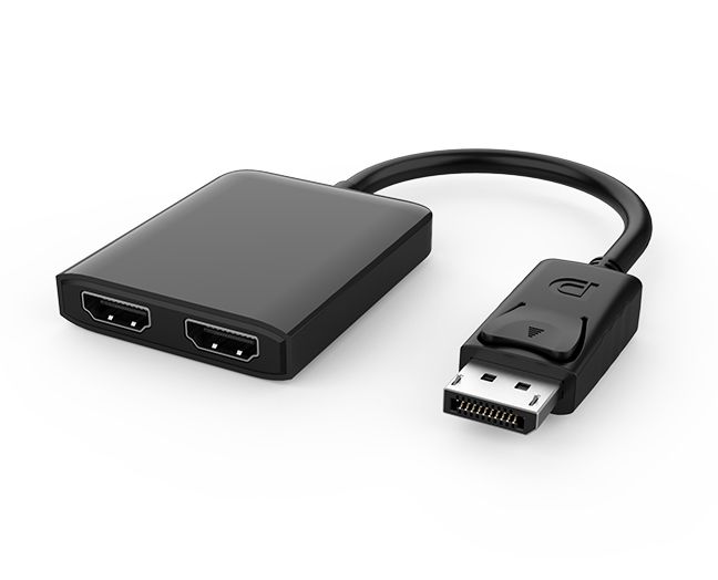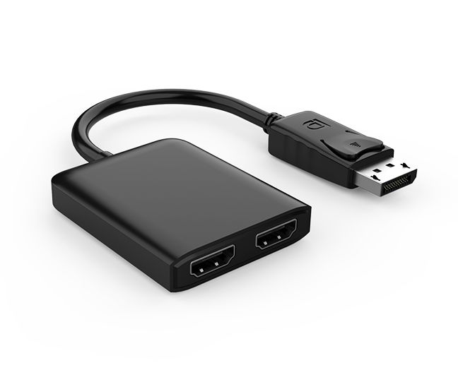 本产品为一进二出DP转HDMI高清视频转接器,,,,,DP接口支持最新 DP alt mode 信号输入,,,,,2个HDMI信号输出,,,,,MST模式下同时输出两个4K@60Hz区分率。。。。。。。。将DP公头插入电脑/平板等有DP接口的主机装备,,,,,再用HDMI线材毗连显示器/电视/投影仪等有HDMI接口的显示装备,,,,,即可增添另外两个显示器来镜像多个相同界面或拓展多个差别的界面。。。。。。。。多屏显示可应用于多使命处置惩罚应用场景,,,,,可大大地提高事情效率。。。。。。。。