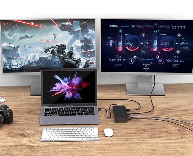 本产品为13合1三显通用扩展坞,,,,,,,,能兼容所有USB-A,,,,,,,,USB-C接口的电脑/主机装备以及DP/HDMI接口的显示装备,,,,,,,,因其接纳Display Link芯片计划。。。。。5个视频口(2xDP+2xHDMI+HDMI),,,,,,,,可随意搭配选择,,,,,,,,最多支持3个外部显示器同时显示4K区分率画面(3个画面可以差别);;;;;;;3个Gen2 (10Gbps)数据口供高速数据传输,,,,,,,,如SSD,,,,,,,,高速硬盘等;;;;;;;2个Gen1 (5Gbps)数据口供传输数据及外围装备用,,,,,,,,如硬盘,,,,,,,,U盘,,,,,,,,键盘,,,,,,,,鼠标,,,,,,,,读卡器等;;;;;;;1个千兆网口可提供高达1000MB/s的稳固网络情形;;;;;;;1个耳机/麦合二为一的音频口提供高音质的声音传输;;;;;;;1个DC 100W电源接口可外接DC适配器供扩展坞全功效事情用电以及给电脑充电,,,,,,,,包管长时间事情一直电。。。。。该产品集视频,,,,,,,,音频,,,,,,,,数据,,,,,,,,网络,,,,,,,,充电全功效于一身,,,,,,,,兼容所有装备,,,,,,,,可知足任何用户的所有需求,,,,,,,,是办公/商用/家用的完善选择。。。。。