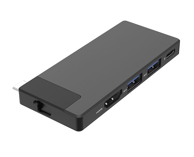 本款产品是USB-C to HDMI+3*USB3.0+PD3.0(100W)的便携式转接器,,,,,,,适用于带USB-C接口的手机/平板/电脑等装备扩展出更多功效。。。。。其中HDMI显示口支持4K/60Hz的视频区分率,,,,,,,PD口支持100W的充电功率,,,,,,,3个USB3.0口均支持5Gbps的数据传输速率,,,,,,,其中靠近HDMI口的USB3.0口同时支持BC1.2快充,,,,,,,三个USB3.0口共用限流为2.5A。。。。。